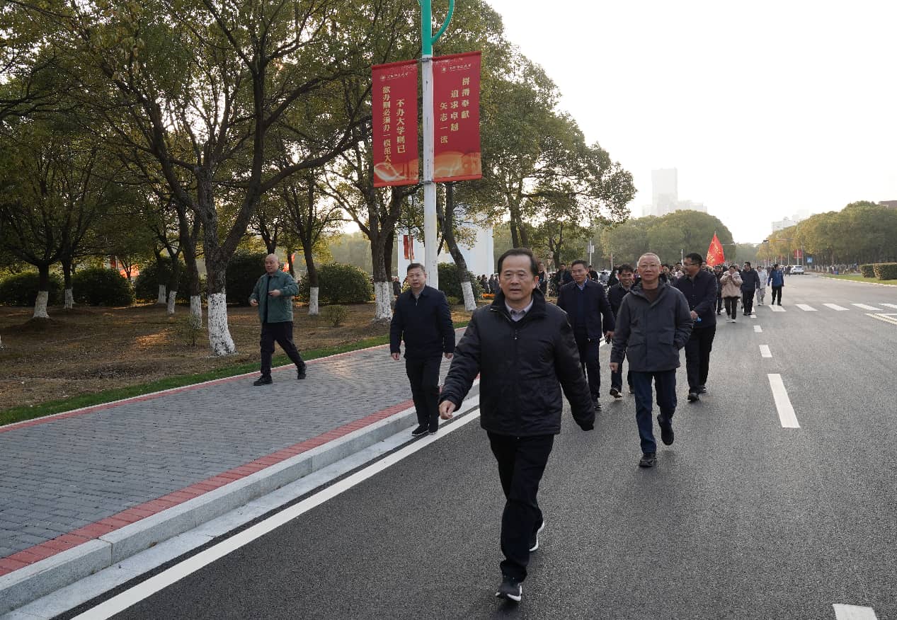 春风健步,岁启新元。1月6日下午,学校举办2026年“迎新年”教职工健步走活动。校党委书记朱小理在正大坊前扣响发令枪,宣布健步走活动开始。在校党政班子成员舒平贵、刘利民、杨卫军、王一喜,各部门各学院教职工参加。